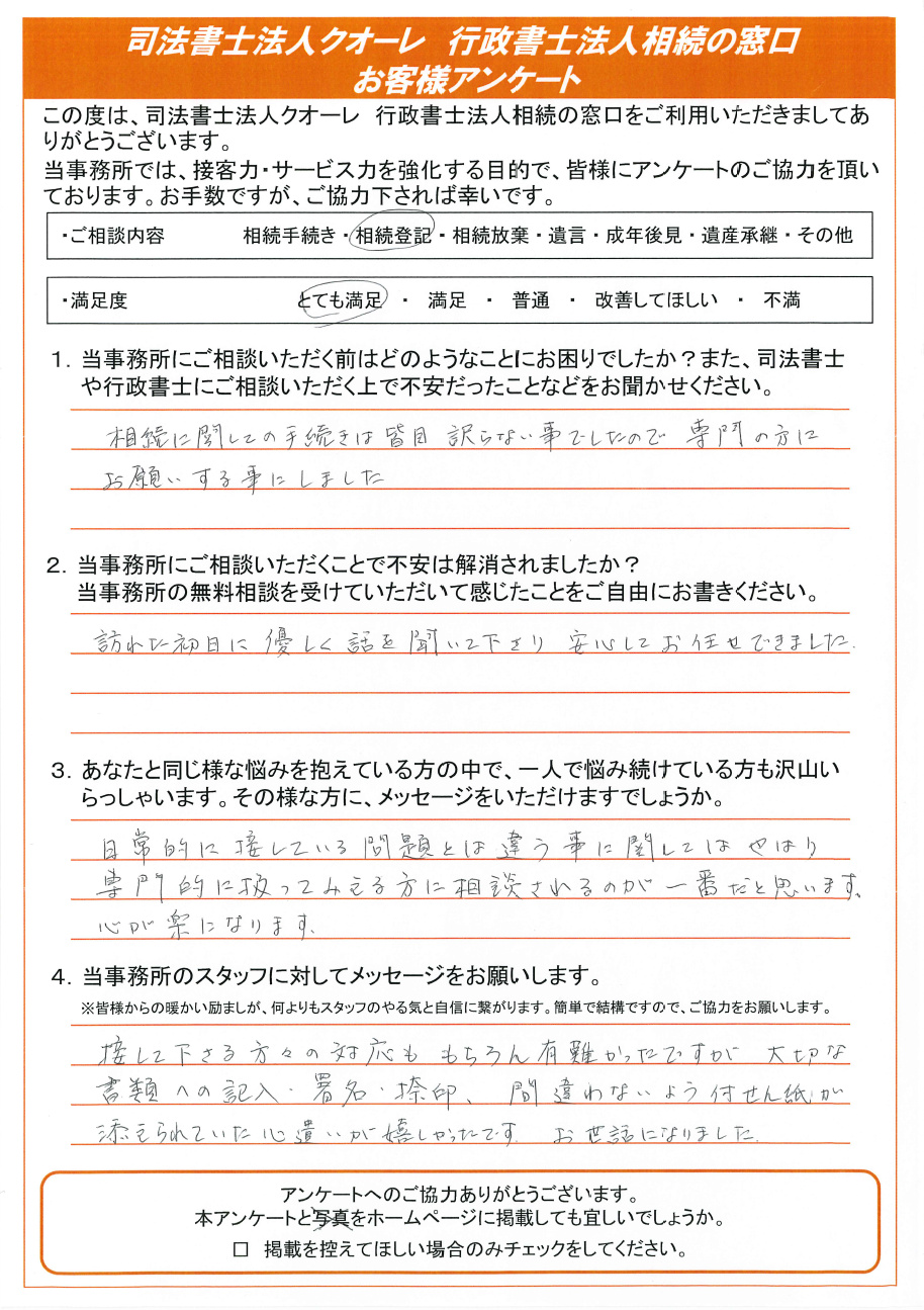お客様の声 | 相続の窓口|【公式】司法書士法人クオーレ