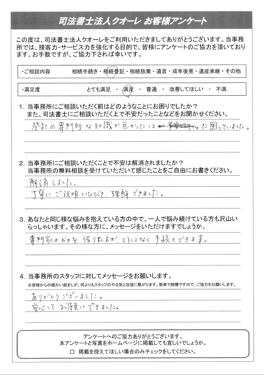 当事務所にご相談いただく前はどのようなことにお困りでしたか?また、司法書士にご相談いただく上で不安だったことなどをお聞かせください。